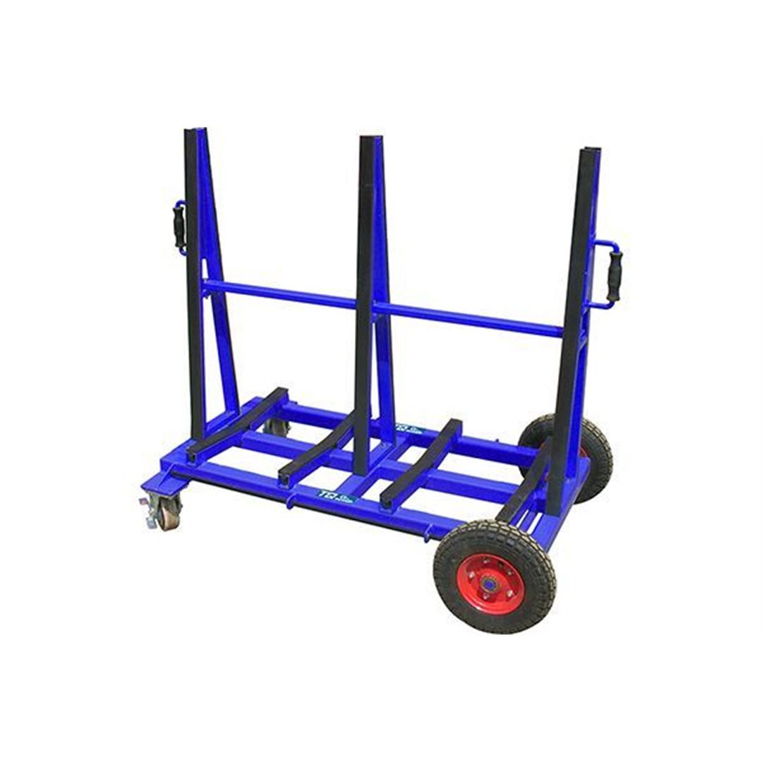 The Double Sided Slab Buggy is also designed for maximum stability yet compact enough to fit through any door. Both the A-Frame and the base are fully rubber-lined to protect finished pieces from chipping and slipping. It has 2 self-locking swivel casters and 2 pneumatic tires for easy transport on any surface.