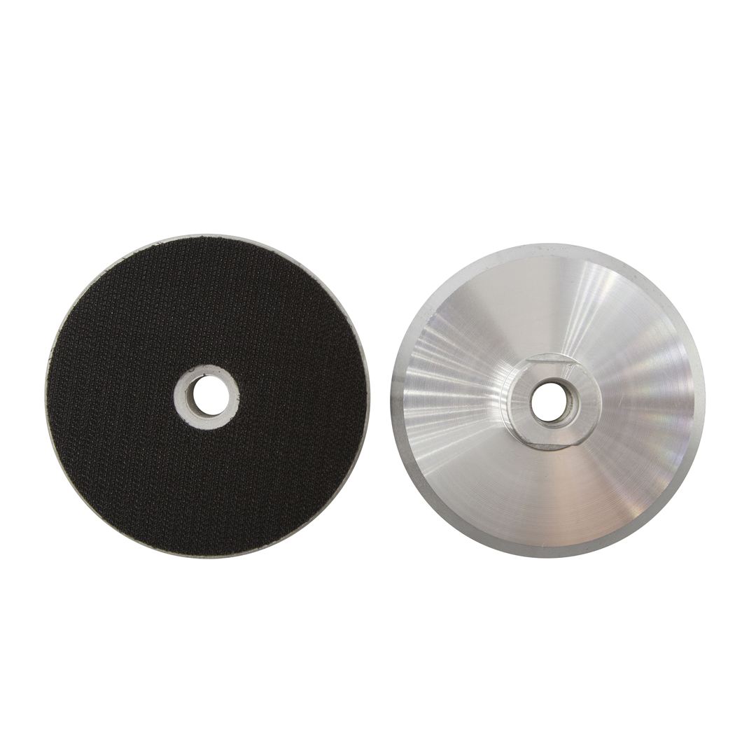 Aluminium backing plate with M14 thread, perfect for use on polishers. Velcro face for easy attachment and removal of polish pads 125m diameter
