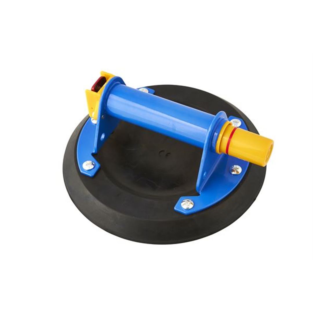 200mm Suction Pad 100kg Maximum Lifting Capacity Metal handle Grips on to any smooth flat surface Pump action suction activation Supplied in blowmould carry case