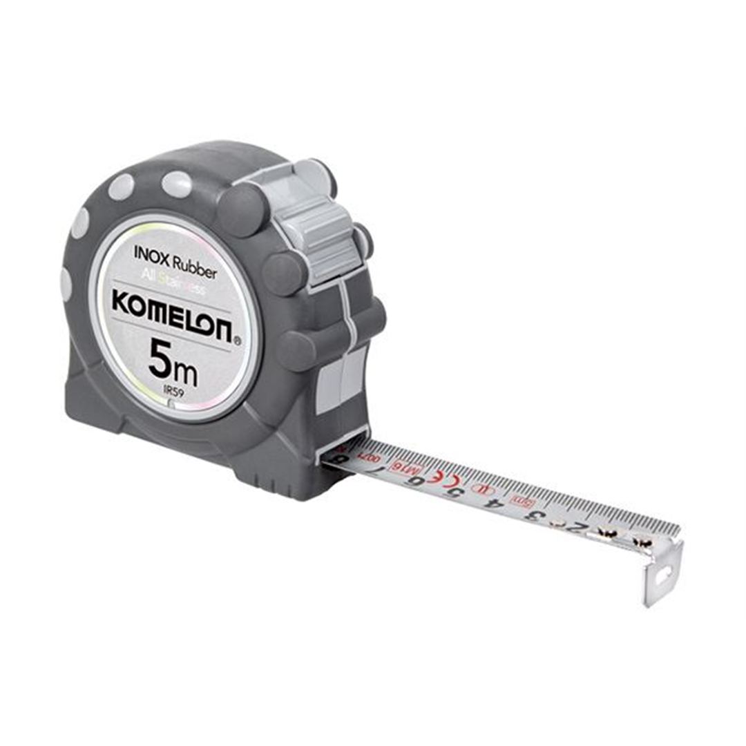 The Komelon 5m Inox Stainless Steel Tape has an all stainless steel construction for improved resistance against rust. Contained within an ergonomically designed ABS case with a moulded rubber grip for increased comfort. The stainless steel blade has been nylon coated to last up to 15 times longer than conventional blades. The blade has metric and imperial markings with deburred edges.